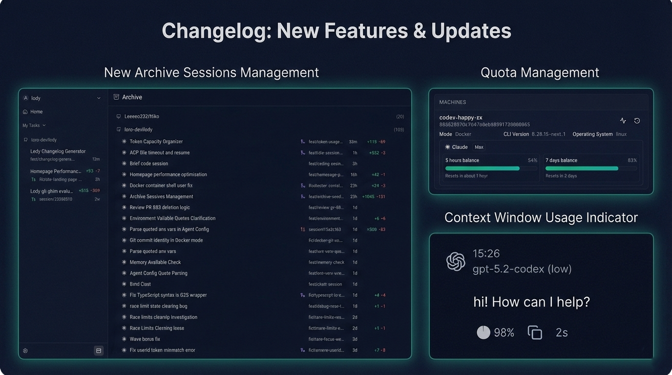 - Added an archived sessions page: browse archived sessions grouped by repository, with restore and permanent delete