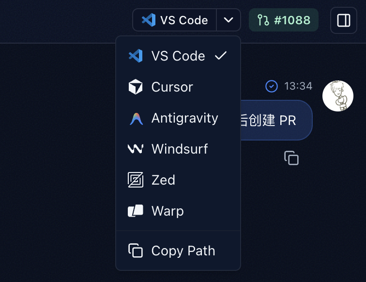 - If working on the same machine with CLI, you can now seamlessly open IDE directly from chat